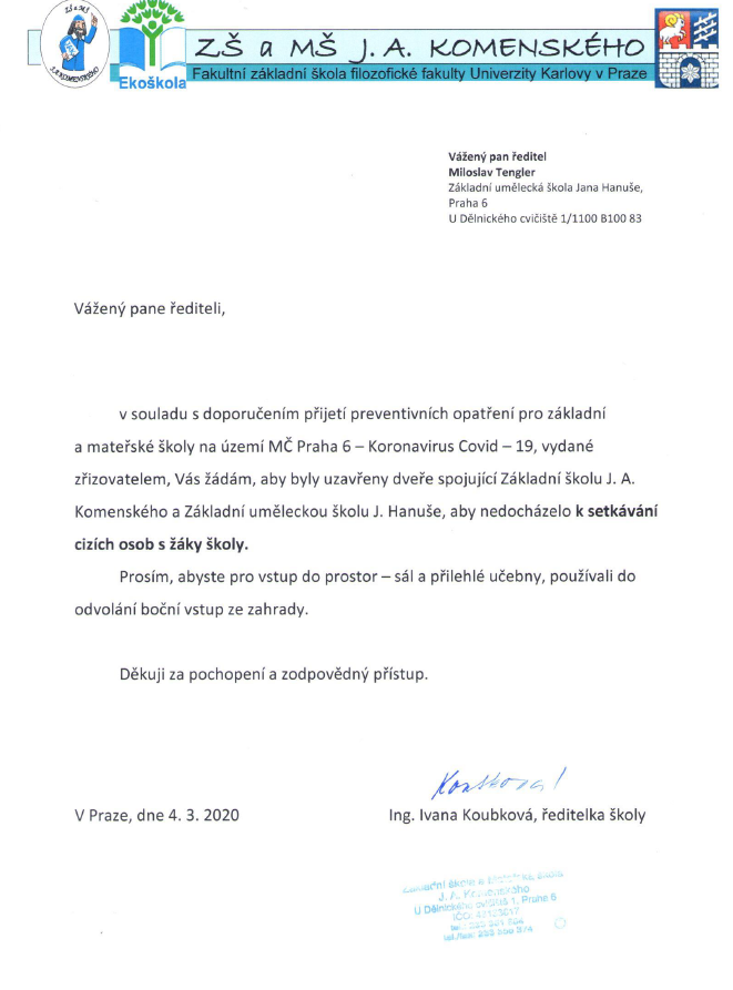 V každé třídě je kostka dezinfekčního mýdla. Žáci si při příchodu umyjí ruce.